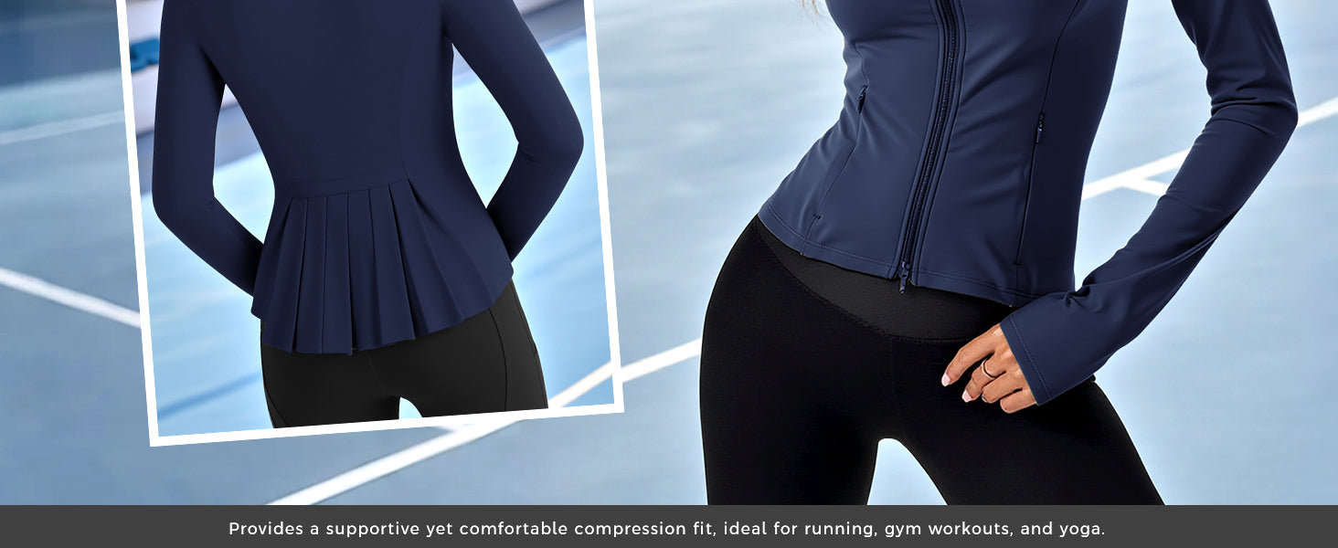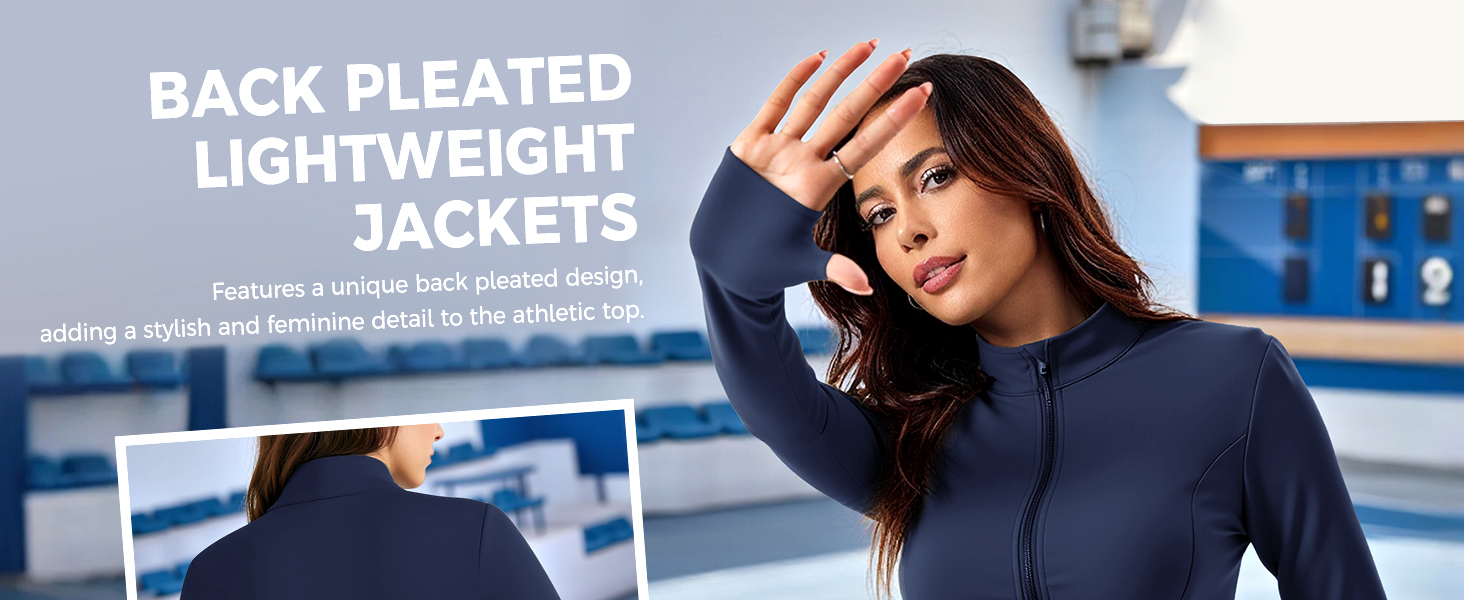 LOVILDS slim Fit Women’s Workout Zip Jacket: Lightweight Pleats + Thumb Holes – Perfect for Active Days!